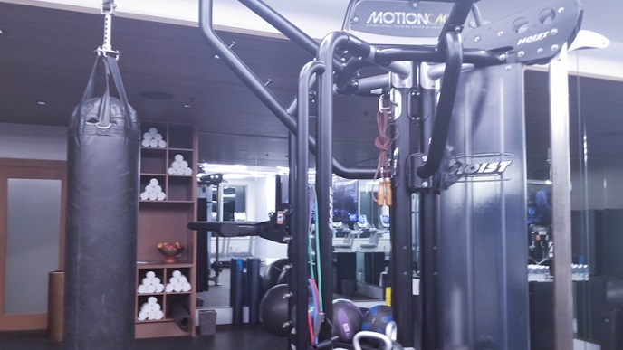 Banyak peralatan olah raga yang disediakan di fitness center ini.
