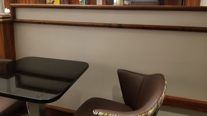 Lounge ini tidak mempunyai jendela. Di dinding dipasang hiasan jendela kayu yang tidak bisa dibuka. Disediakan banyak lampu untuk menerangi ruangan lounge ini.